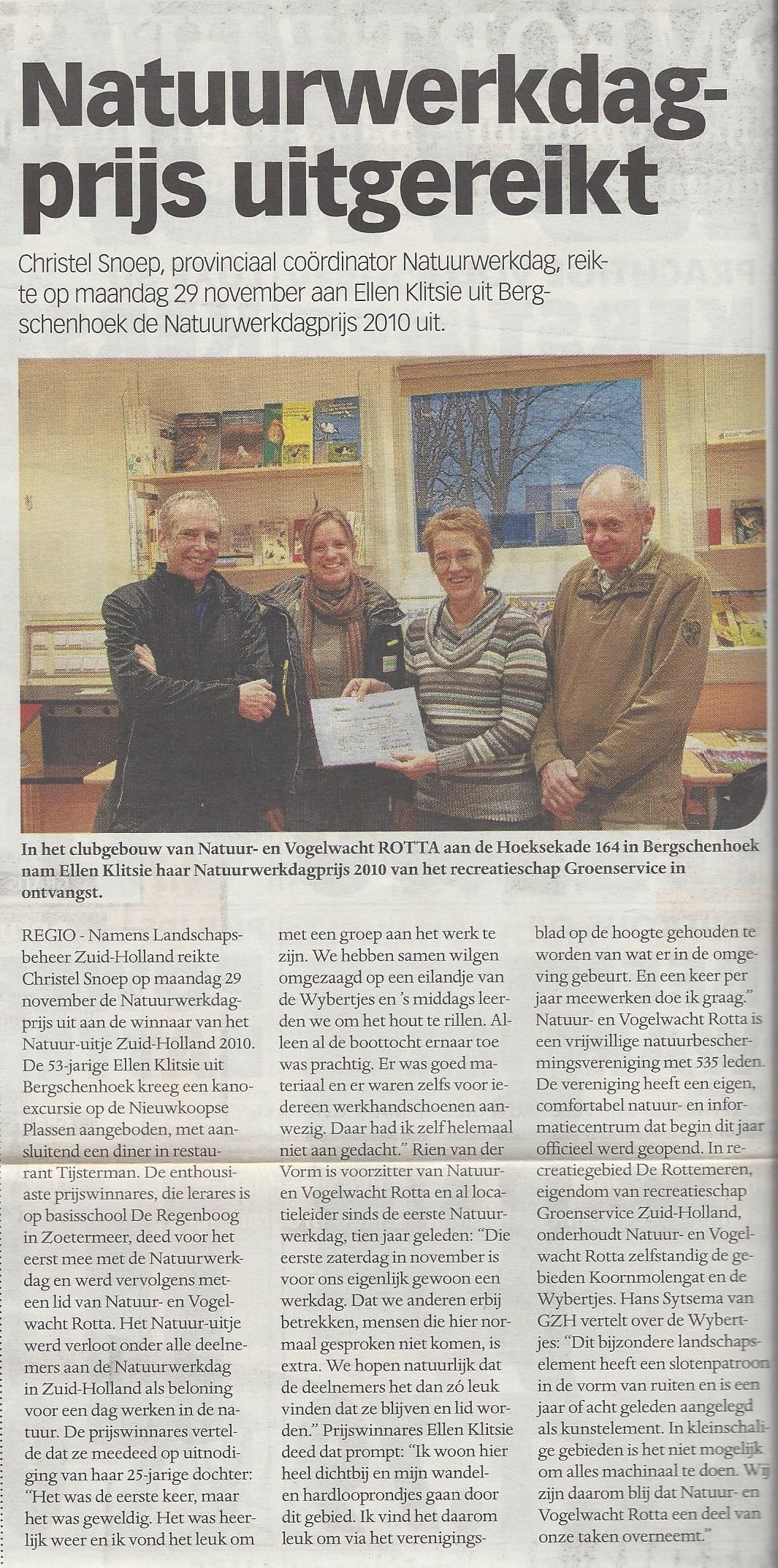 Krantenartikel Natuurwerkdag en prijsuitreiking. De Heraut, 8 december 2010.